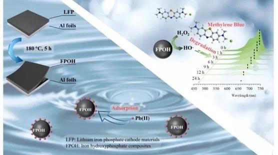 圖:磷酸鐵鋰電池制備羥基磷酸鐵用于吸附重金屬鉛和芬頓催化降解亞甲基藍(lán)