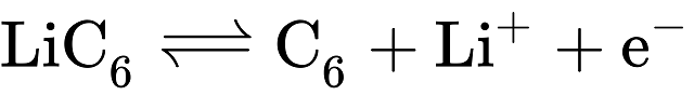 放電過程中,鋰離子從負(fù)電極移動(通常是石墨=“C6"),當(dāng)電池正在充電時,鋰離子和鋰離子會發(fā)生相反的變化,如下所述:通過電解質(zhì)到達(dá)電解質(zhì)的正極(負(fù)極)(形成鋰化合物),而電子則沿相同方向流過外部電路。電子以較高的凈能態(tài)返回負(fù)極,以下方程式說明了化學(xué)反應(yīng)。